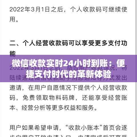 标题:微信收款实时24小时到账:便捷支付时代的革新体验