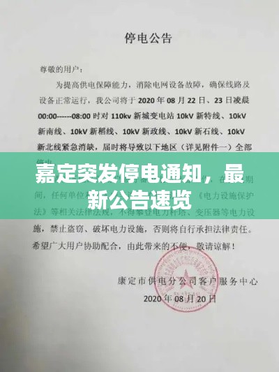 大家好!为确保广大市民及时了解电力供应情况,特此发布嘉定地区突发停电公告通知,请各位市民密切关注,并做好相应准备。