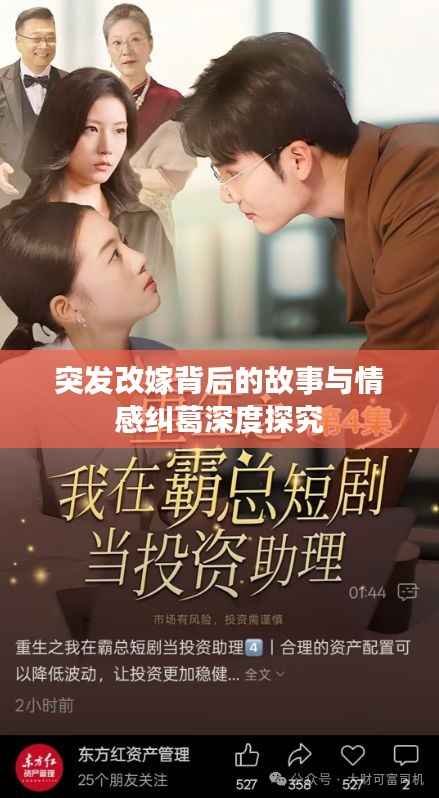 在生活的舞台上,我们常常会遇到一些突如其来的变故,突发改嫁”便是其中之一,这个词背后隐藏着复杂的故事和情感纠葛,涉及到个人选择、家庭责任、社会舆论等多个层面,本文将围绕这一主题展开探讨,试图剖析其中的内涵与外延。