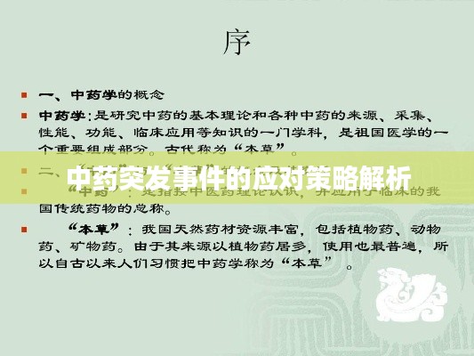 面对中药疑难突发事件,我们需要从以下几个方面进行应对: