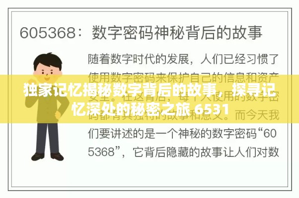 在人生的长河中,每一个数字都可能承载着一段独特的记忆,今天我们要讲述的,是关于“独家记忆6531”的故事,这个看似普通的数字组合,背后却隐藏着一段深刻而独特的回忆。