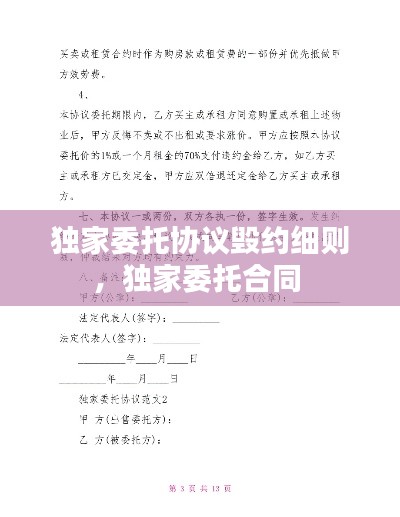 独家委托协议是指委托人与受托人之间签订的一种具有排他性的合同,其中委托人授予受托人在特定范围内代表其进行事务处理的权利。然而,在实际操作中,由于各种原因,双方可能会出现毁约的情况。本文将详细阐述独家委托协议毁约的细则,以帮助各方了解相关法律规定和应对措施。