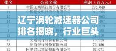 随着工业领域的快速发展,涡轮减速器作为一种重要的动力传输设备,广泛应用于各类机械装置中,在辽宁这一工业大省,众多涡轮减速器公司竞相发展,为国内外市场提供高质量的产品与服务,本文将为您介绍辽宁地区涡轮减速器公司的排名,以便您更好地了解这一领域的领军企业。