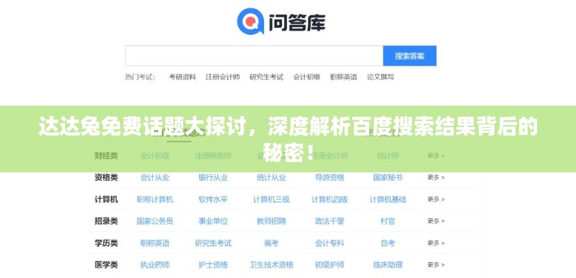 随着互联网的普及和科技的飞速发展,搜索引擎已成为人们获取信息的重要途径之一,在众多搜索引擎中,百度以其强大的搜索功能和丰富的信息资源脱颖而出,成为人们日常生活中不可或缺的工具,而关于“百度一下达达兔免费”这一关键词组合,涉及到的问题较为复杂,需要从多个角度进行探讨。