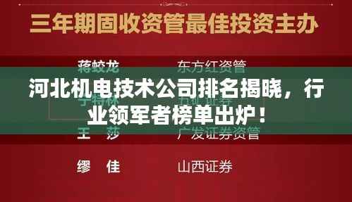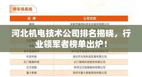 随着科技的飞速发展,机电技术行业日新月异,河北省在这一领域内的企业也如雨后春笋般涌现,本文将为您详细介绍河北机电技术公司的排名及相关情况。