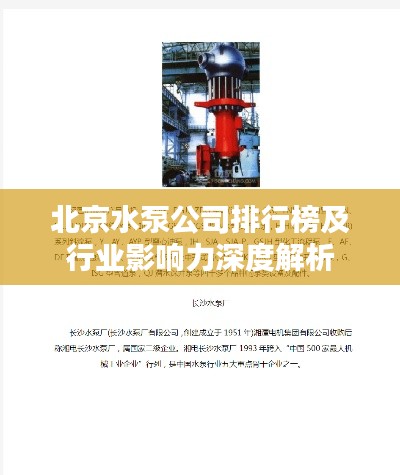 北京作为中国的首都,其工业领域涵盖了众多高端技术产业,其中水泵行业亦占据重要地位,众多优秀的北京水泵公司凭借卓越的产品质量、创新的技术实力以及良好的服务赢得了广大用户的信赖,本文将探讨北京水泵公司的排名及其行业影响力。