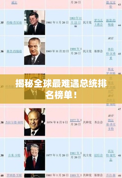 在世界历史的长河中,总有一些特殊的存在,他们以卓越的领导力、坚韧的意志和独特的个人魅力,成为了时代的标志,而在众多总统中,有些因其特殊的背景和经历,成为了人们心中最难遇到的总统,以下便是世界上最难遇的总统排名,让我们一起领略他们的风采。