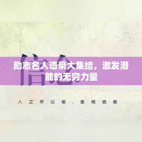 励志名人语录合集,如同一座宝库,里面蕴藏着无尽的力量和智慧,当我们面临困境时,不妨从这些语录中寻找灵感和力量,让我们在人生的道路上,勇敢前行,不断追求梦想,实现自己的价值,希望通过本文的励志名人语录合集,您能找到激发自己潜能的力量,勇往直前,创造属于自己的辉煌。