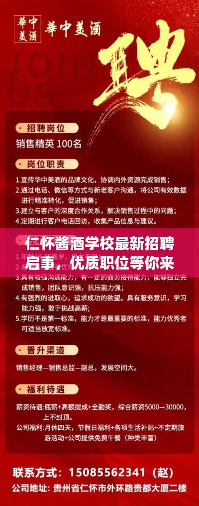 随着酿酒行业的蓬勃发展,仁怀酱酒学校作为培养专业酿酒人才的重要基地,一直在积极寻求优秀的教育人才加入其团队,仁怀酱酒学校发布了一系列招聘信息,为热爱教育事业、有志于投身酿酒教育的人士提供了良好的就业机会。