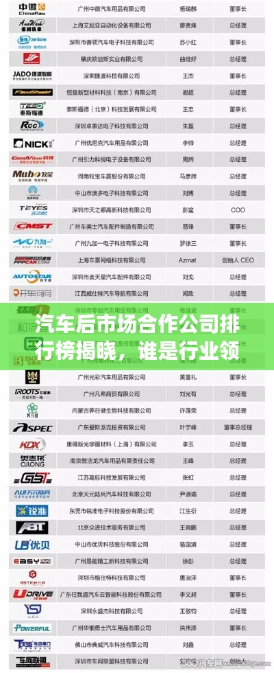 随着汽车产业的飞速发展,汽车后市场逐渐成为各大企业竞相争夺的焦点,本文将探讨汽车后市场合作公司的排名及相关情况,帮助读者了解这一领域的领军企业。