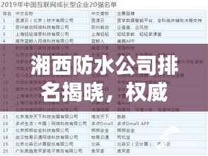 随着建筑行业的蓬勃发展,防水工程的重要性日益凸显,在湘西地区,众多防水公司凭借卓越的技术实力和服务水平脱颖而出,本文将为您介绍湘西地区防水公司的排名,以便您在选购防水服务时做出明智的选择。