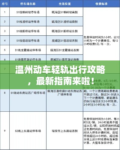 温州,一座充满魅力的城市,近年来交通发展日新月异,动车轻轨作为现代城市的重要交通工具,为市民和游客提供了便捷、高效的出行方式,本文将为您带来温州动车轻轨的最新攻略,助您轻松出行。