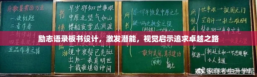 板书设计,是教学过程中的重要环节,也是传递信息的一种有效手段,通过色彩、布局、字体等元素的巧妙组合,板书设计能够直观地传达信息,吸引人们的注意力,在励志语录的板书设计中,这些元素被用来强化励志语录的效果,使之更加深入人心。