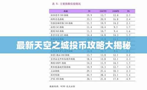 就是最新的“天空之城”投币攻略,希望能帮助大家在游戏中更好地进行投币,提升游戏体验,在游戏中,玩家应保持理性,关注游戏更新,不断提升自身实力,以获取更多的投币资源和收益,玩家也应注意账号安全和遵守游戏规则,以保持良好的游戏体验,希望大家在游戏中度过愉快的时光。