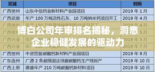 随着市场竞争的加剧,企业的稳健发展越来越受到关注,在众多的企业中,博白公司的年审排名一直备受瞩目,本文将深入探讨博白公司的年审排名背后的含义,以及这一排名所反映出的企业实力和未来发展潜力。