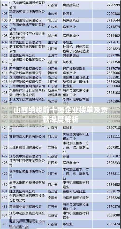 山西纳税排名前十的企业是山西省经济发展的佼佼者,它们的高额纳税额不仅体现了企业的实力,也反映了其对社会的贡献,在未来,我们期待这些企业能够抓住机遇,迎接挑战,为山西省的经济发展和社会进步做出更大的贡献。