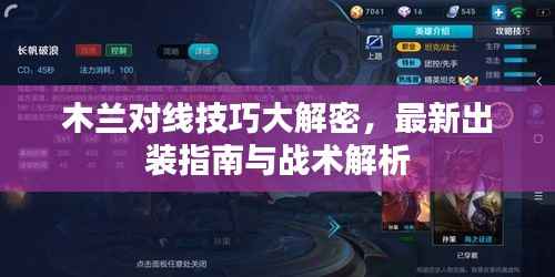 花木兰,即木兰,是一位在游戏中非常受欢迎的英雄角色,掌握木兰的对线技巧和出装搭配,对于提升游戏水平至关重要,本文将为大家带来最新的木兰对线攻略及出装指南,帮助玩家更好地掌握这位英雄。
