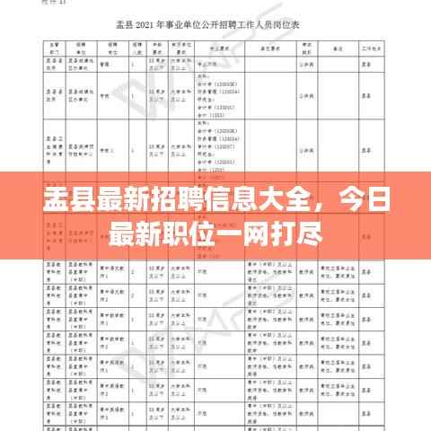 随着经济的繁荣和不断发展,盂县作为一个重要的地区,其招聘信息一直备受关注,本文将为您带来今日盂县的最新招聘信息,帮助您了解当地的就业市场,找到适合自己的工作机会。