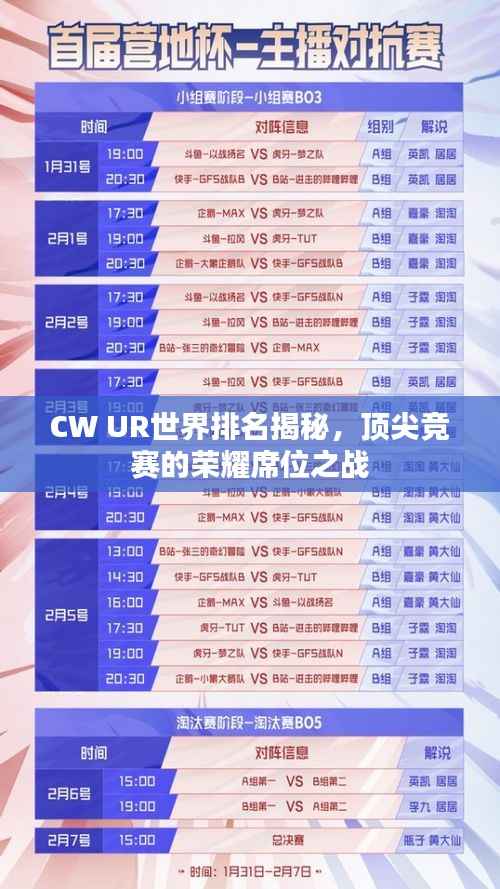 随着全球电子竞技产业的飞速发展,各大赛事的排名竞争也日益激烈,CW UR世界排名无疑是众多玩家和粉丝关注的焦点,本文将带您一探CW UR世界排名的背后,揭示顶尖竞赛的排名奥秘。