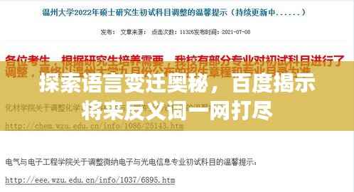 随着科技的飞速发展和互联网的普及,我们的生活日新月异,变化之快令人目不暇接,在这样的时代背景下,语言作为人类交流的重要工具,也在不断地演变和更新,今天我们要探讨的关键词是“百度一下将来的反义词”,这个短语反映了我们当前语言使用中的一种新现象,也预示了未来反义词可能的发展趋势,让我们一起探讨这个充满魅力的主题。