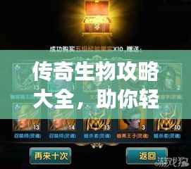 随着游戏产业的蓬勃发展,越来越多的游戏受到广大玩家的热爱与追捧。“传奇生物”以其独特的魅力,吸引了无数玩家的目光,本文将为大家带来一份详尽的传奇生物最新攻略,帮助大家在游戏中更好地探索、成长和战斗。