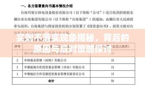 在当今社会,我们时常会遇到一种奇怪的现象——“实则不落实”,许多政策、计划、决策在实际操作中往往难以落地,表面上的繁荣和忙碌背后,隐藏着诸多问题和挑战,这种现象不仅影响了社会运行的效率,也阻碍了发展步伐,本文将从现象分析入手,探讨其原因,并提出相应的对策。