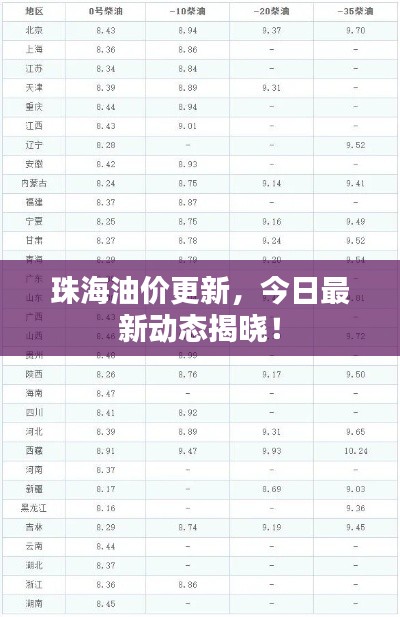 随着全球经济的不断发展和人们对能源需求的日益增长,油价问题一直备受关注,珠海作为中国重要的经济特区之一,其油价动态更是备受瞩目,本文将围绕“今日珠海油价最新”这一主题,为您详细解读珠海油价现状及其未来趋势。