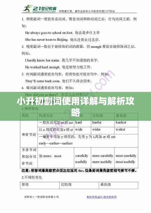 为了更好地辅助学生们学习小升初阶段的副词知识,我们提供了一些常用的副词列表和例句,供学生们参考和复习,我们也推荐了一些优秀的英语学习资源,帮助学生们提高英语学习能力。