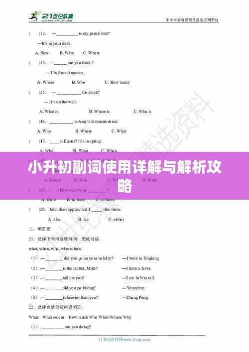 随着教育的不断进步和改革,小升初阶段的学习成为了一个重要的过渡阶段,在这个阶段,学生们需要掌握更多的语言知识,其中副词的使用是其中的一项重要内容,本文将针对小升初阶段的副词专题进行深入解析,帮助学生们更好地掌握这一知识点。
