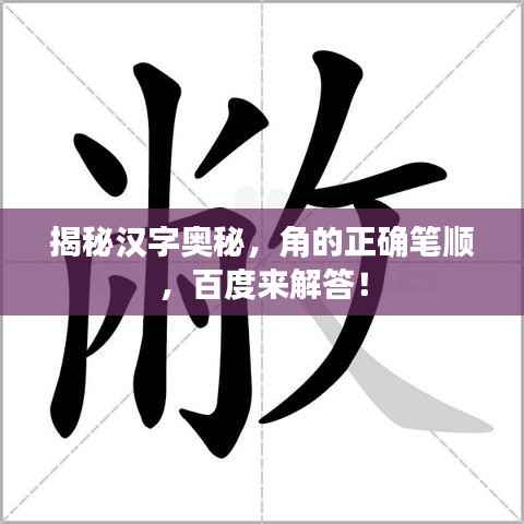 转载请注明来自成都华通顺物流有限公司,本文标题:《揭秘汉字奥秘,角的正确笔顺,百度来解答!》