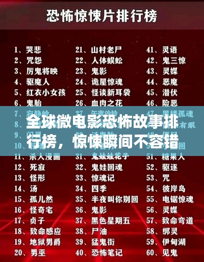 随着影视文化的不断发展,微电影作为一种新兴的影视艺术形式,以其短小精悍、富有创意的特点,吸引了众多观众的关注,而在微电影领域中,恐怖题材的微电影更是因其独特的叙事方式和惊悚氛围的营造,成为许多人心目中的经典之作,本文将介绍世界微电影恐怖故事排名,带您领略那些令人毛骨悚然却又难以忘怀的恐怖佳作。