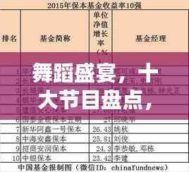 舞蹈,作为艺术的一种表现形式,以其独特的魅力吸引着无数观众,每年的舞蹈节目都如繁星般繁多,各有千秋,在此,我们为您带来舞蹈节目排名前十名的介绍,让我们一起领略这些节目的魅力所在。