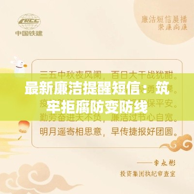 随着社会的不断发展,廉洁自律已经成为每个公民和企业应尽的责任。为了进一步加强党风廉政建设,提高党员干部的廉洁意识,各级纪检监察机关不断创新廉洁提醒方式,其中最新推出的廉洁提醒短信成为了传播廉洁文化的重要载体。本文将带您了解最新廉洁提醒短信的内容,以及如何通过这些短信筑牢拒腐防变的防线。