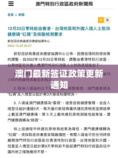 根据最新消息,澳门特区政府正在优化签证政策,为游客提供更加便捷的签证服务,以下是关于澳门最新签证消息的详细内容: