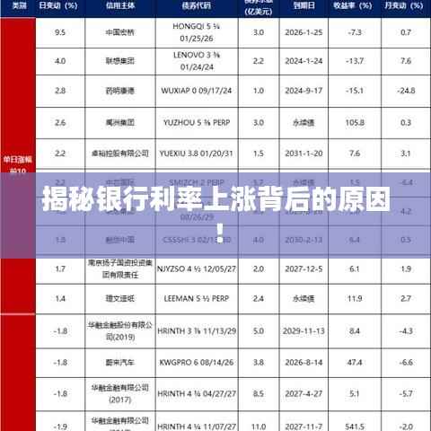 银行利率不断上涨的原因是多方面的,它既受到经济环境、政策调整、市场竞争等外部因素的影响,也与投资需求、风险管理成本等内部因素密切相关,面对不断变化的金融市场环境,我们需要保持警惕,关注银行利率的走势,以便做出更明智的投资决策。