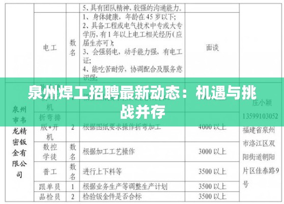 标题:泉州焊工招聘最新动态:机遇与挑战并存