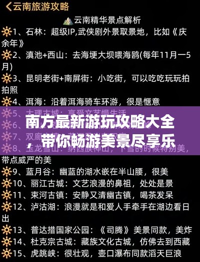 南方,以其独特的魅力吸引着无数游客,本文将为您呈现南方最新游玩攻略,带您领略南方的风土人情,让您在旅途中收获满满的美好回忆。