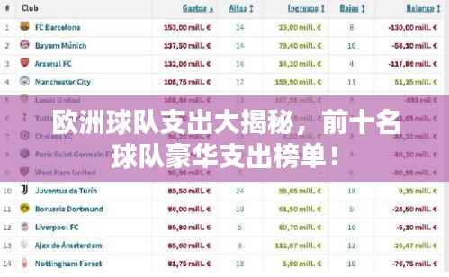 足球是欧洲最受欢迎的运动之一,各大豪门球队为了赢得比赛和荣誉,不惜投入巨资引进顶级球员和增强设施,以下是欧洲球队支出排名前十名,这些球队在近年来一直是全球足球界最富有的俱乐部之一。