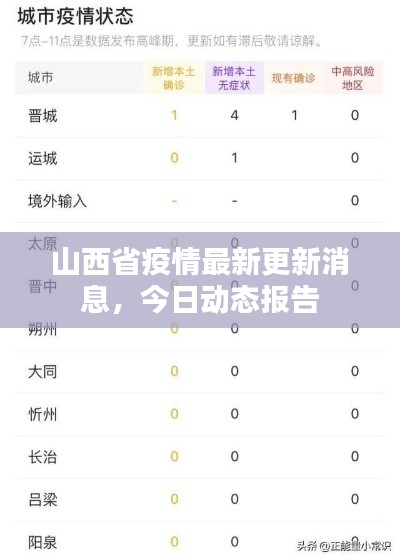 随着全球疫情的持续发展,我国各地疫情防控工作依然严峻,山西省作为我国的能源重化工基地,其疫情防控工作备受关注,本文将为您介绍山西省疫情今日最新消息。