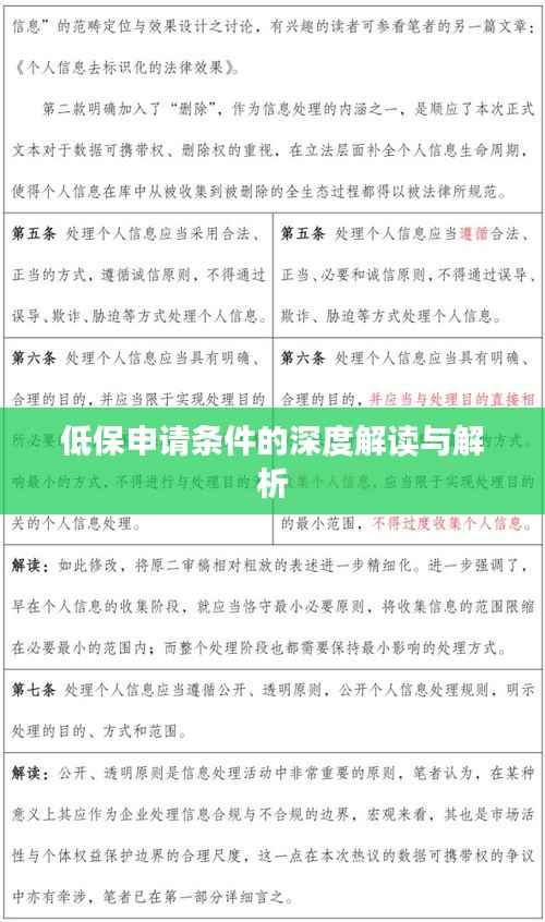 通过本文对“低保申请条件”的详细解析,希望能为需要申请低保的群众提供有用的信息,在申请过程中,申请人应充分了解当地政策,准备相关材料,并确保提供的信息真实有效,申请人也应了解低保金的使用规定,合理使用资金以保障自己和家人的基本生活,如有更多疑问,建议咨询当地相关部门或专业机构。