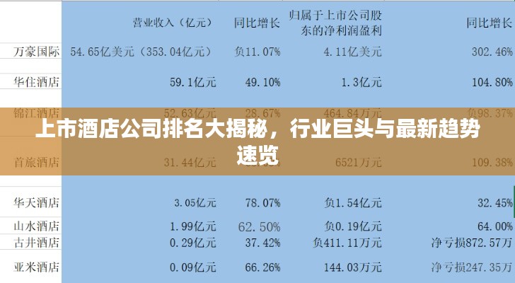 随着全球经济的蓬勃发展,酒店业也日新月异,各大酒店公司纷纷通过上市来拓展业务、提升服务质量,本文将为您揭示当前上市酒店公司的排名,带您了解行业巨头与最新趋势。
