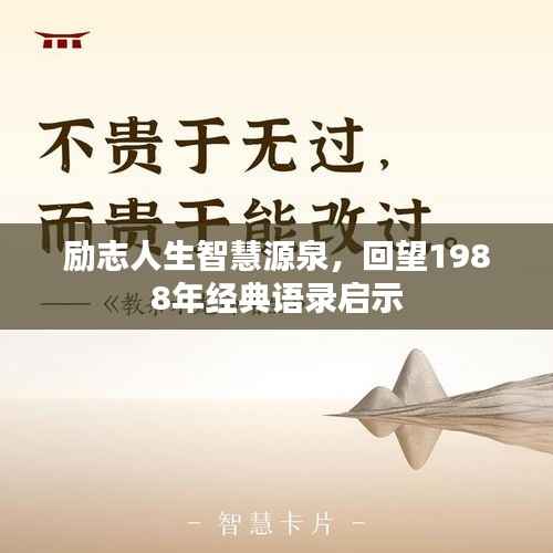回顾1988年的励志经典语录,我们不禁为那个时代的智慧和勇气所折服,这些语录至今仍然鼓舞着我们为梦想奋斗,为我们提供了宝贵的人生启示,让我们铭记这些经典语录,不忘初心,勇往直前,创造更加辉煌的未来。