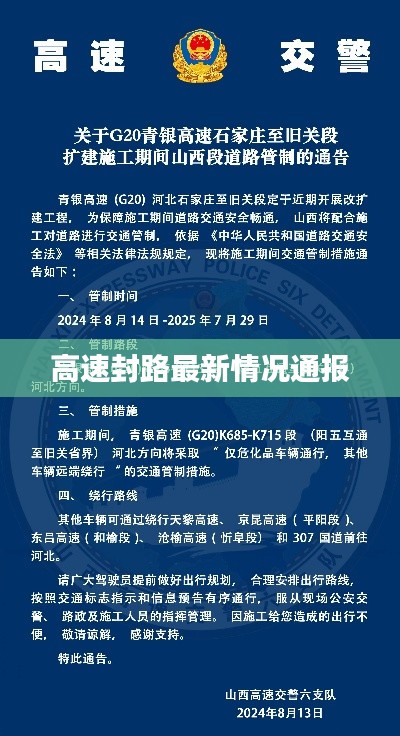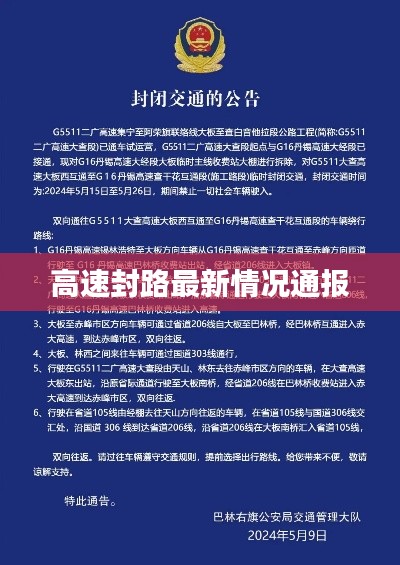 随着社会的快速发展,高速公路作为城市交通的重要组成部分,其运营状况时刻受到人们的关注,在特殊情况下,如恶劣天气、交通事故等突发情况下,高速公路可能会采取封路措施以保障交通安全,本文将为您详细介绍今日高速封路情况的最新信息。