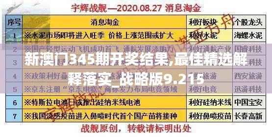 新澳门345期开奖结果作为澳门博彩业的重要组成部分,对于澳门社会经济发展具有重要意义。最佳精选解释落实战略版9.215,旨在全面解读澳门政策文件,深入分析澳门博彩业的未来发展方向。通过制定实施战略性政策,为澳门博彩业的持续繁荣提供有力保障。本文将详细介绍澳门政策文件的具体内容和实施步骤,为相关利益方提供全面参考。
