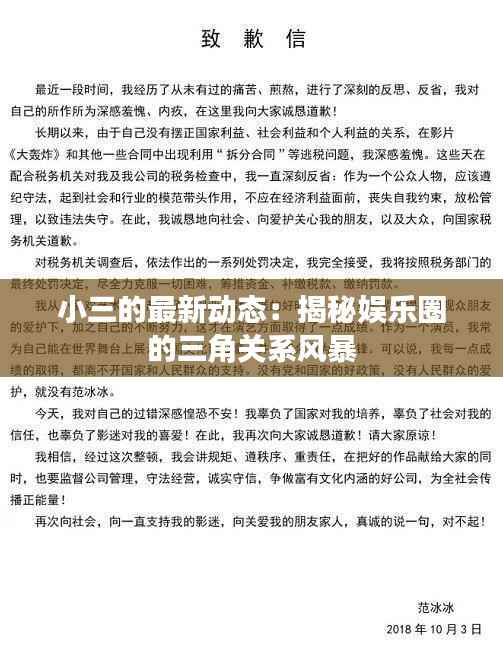 标题:小三的最新动态:揭秘娱乐圈的三角关系风暴