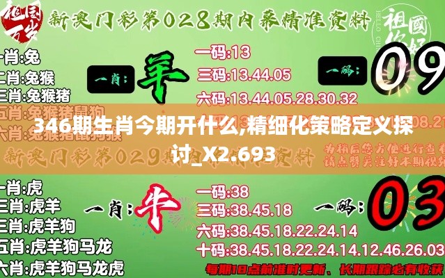在澳门特区,赌博一直是一个重要的经济支柱,尤其是赛马和六合彩。其中,六合彩的生肖预测一直是澳门市民和赌客关注的焦点。本文旨在探讨精细化策略定义对于预测六合彩第346期生肖的重要性,提供一个基于概率论和统计学的全面分析框架。通过深入研究历史数据、统计数字和赔率变化,我们可以了解哪些生肖最有可能在近期开奖中出现。这种方法具有很高的实用价值,不仅可以提高预测准确率,还可以帮助澳门市民和博彩业加强风险管理和优化资金分配。