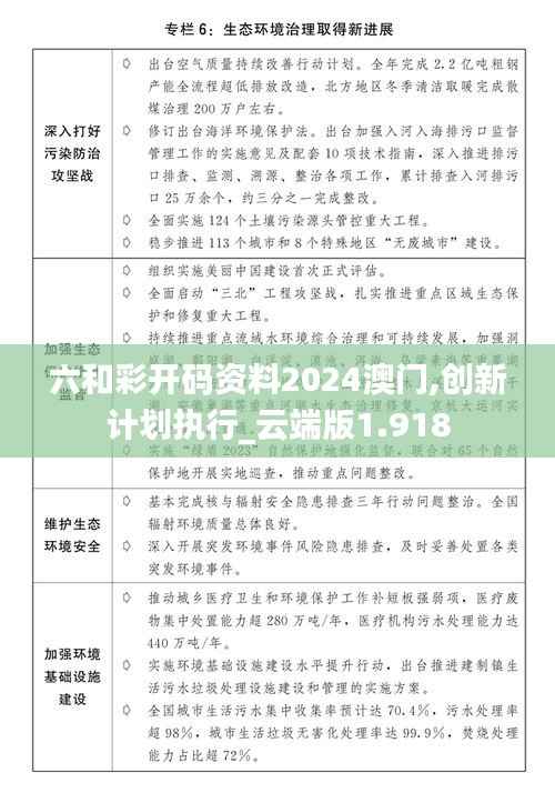 欢迎莅临澳门,六和彩作为历史悠久、深受欢迎的彩票游戏,一直以公平、公正、公开的原则发行。为满足新时代需求和科技发展趋势,特制定“澳门六和彩开码资料2024创新计划执行云端版1.918”,全面升级六和彩服务体验,以下是详细信息: