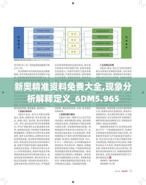 澳门政策文件是澳门特别行政区政府发布的一系列政策文件,旨在指导和规范澳门在经济、社会、文化等各方面的发展。为促进政策的有效实施和广泛传播,政策文件应达到精确性、易理解性与实用性的标准。因此,《新奥精准资料免费大全》应运而生,汇总了政策文件涉及的各类现象、概念解释和实操指南。