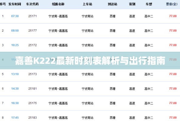 嘉善K222最新时刻表解析与出行指南