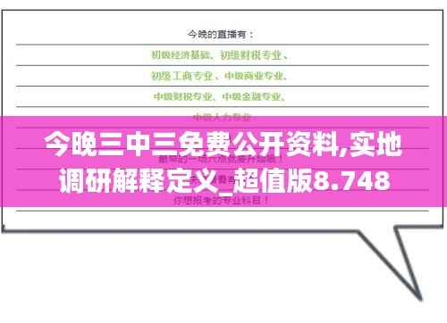 在政策文件中,实地调研的解释是帮助公众理解政策实施具体情况的关键。“今晚三中三免费公开资料,实地调研解释定义_超值版8.748”中,我们详细介绍了实地调研的定义,包括调研的类型(如定性调研和定量调研)、调研工具(如问卷调查、访谈、观察等)以及调研数据的处理和分析方法。